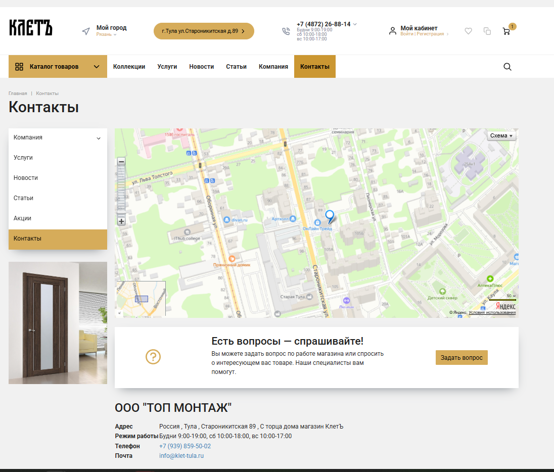 Разработка сайта на 1с Битрикс для Интернет магазина входных и межкомнатных деверей КЛЕТ