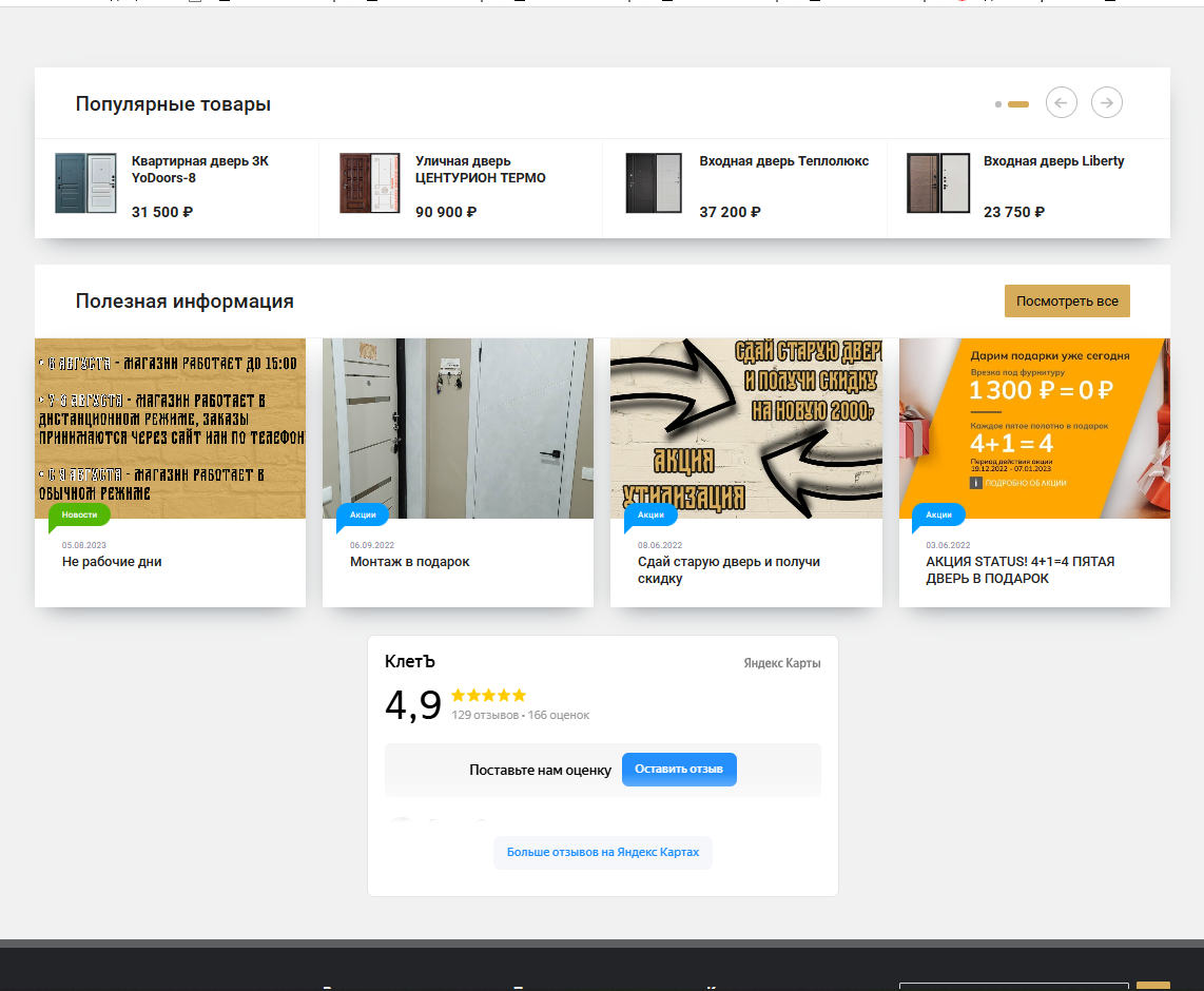 Интернет-магазина на Битрикс для магазина дверей клет - разработка интернет-магазина на Bitrix под ключ.