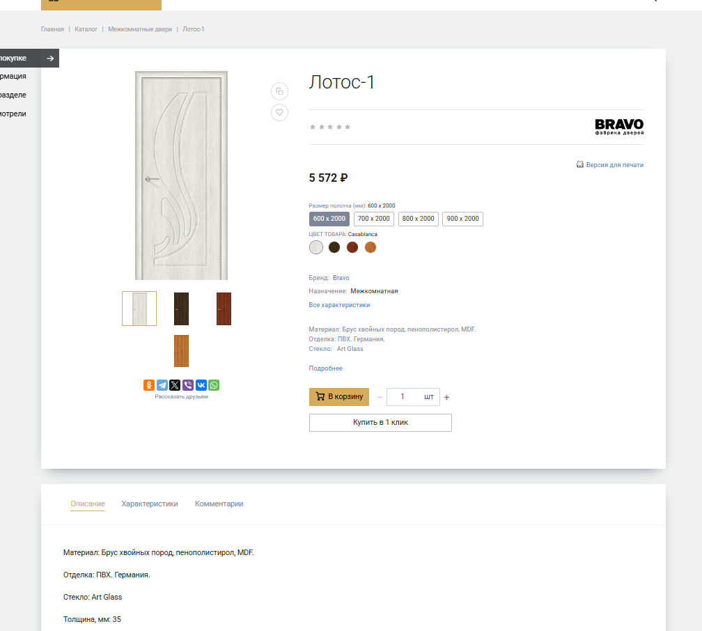 Сайт представляет интернет-магазин с качественно проработанными детальными страницами товаров, на которых выведены основные информация и характеристики товара, приведены технические сведения о продукции.