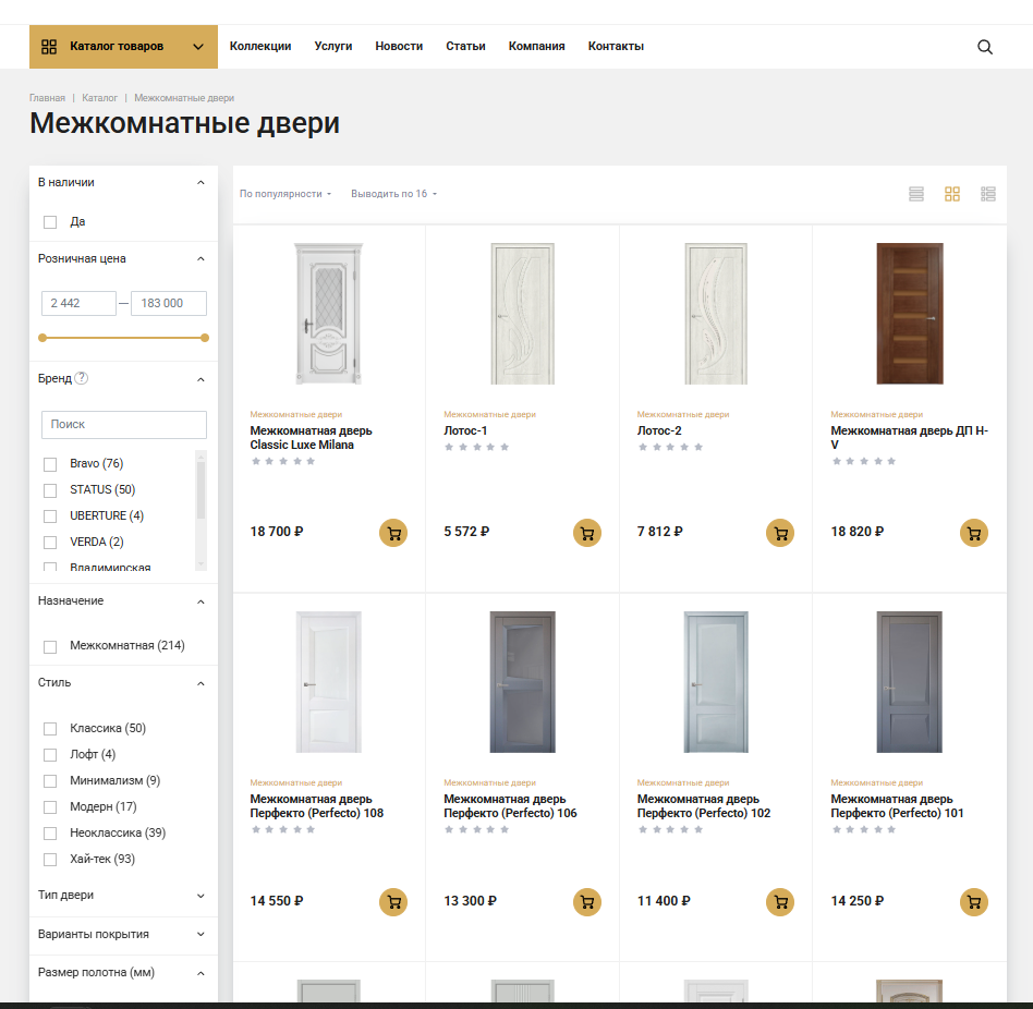 Важным элементом является наличие фильтра по различным категориям, что значительно упрощает выбор подходящей модели двери.