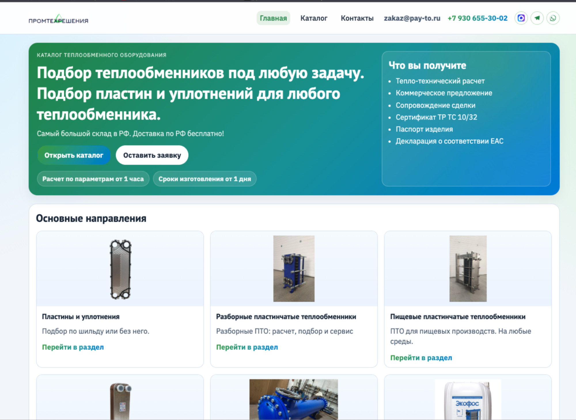 Разработка сайта для «Промтехрешения»: теплообменное оборудование онлайн